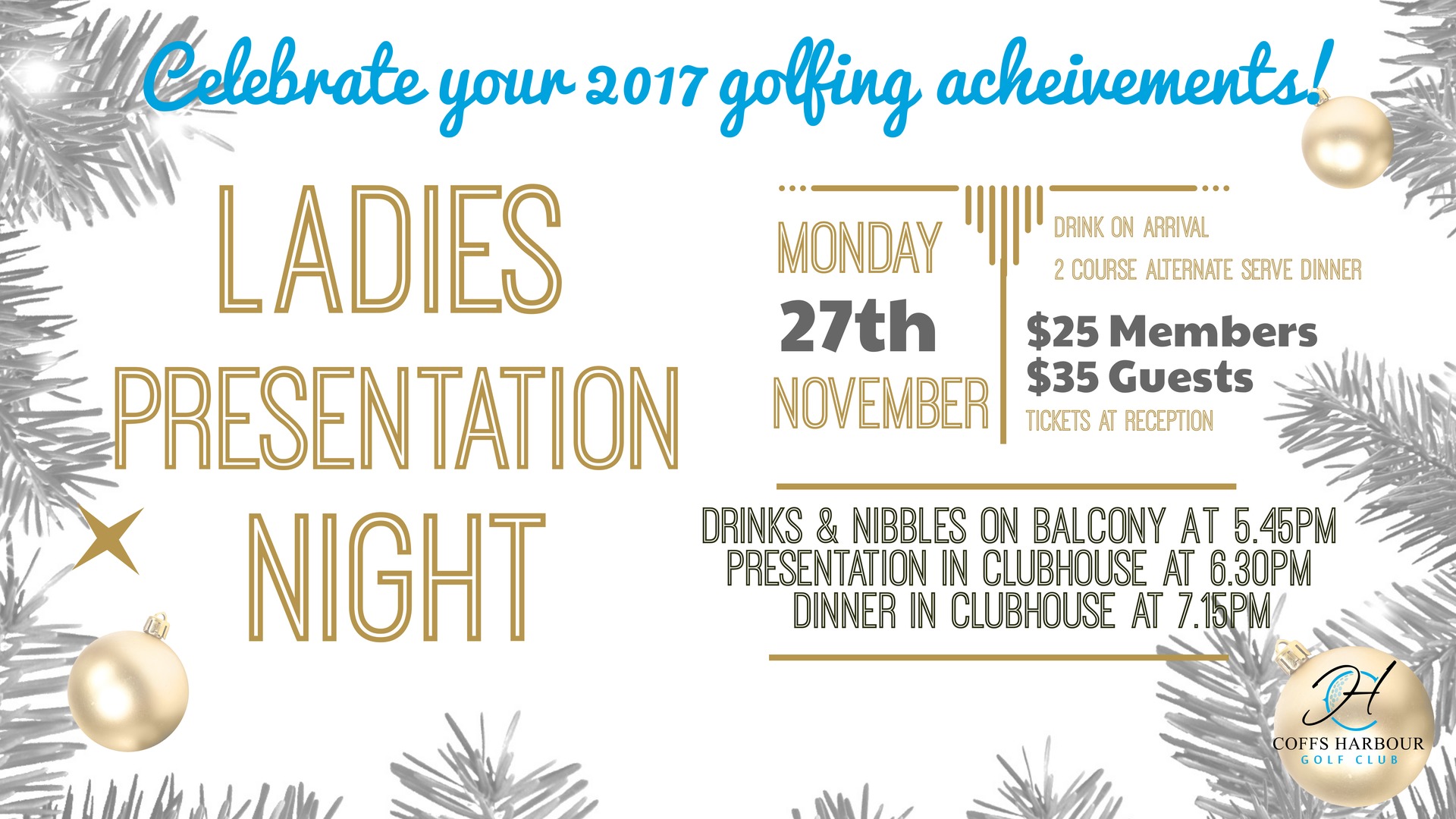 Celebrate your 2017 golfing achievements at the Ladies Presentation Night!